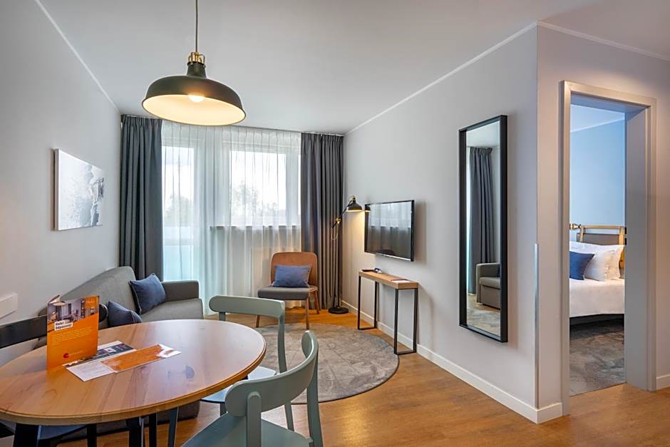 This apartment consists of 1 living room, 1 separate bedroom and 1 bathroom with a shower and free toiletries. Guests can make meals in the fully equipped kitchenette that features a refrigerator, kitchenware and a microwave. The apartment provides a flat-screen TV, a tea and coffee maker, a seating area, a dining area as well as city views. The unit offers 2 beds.
